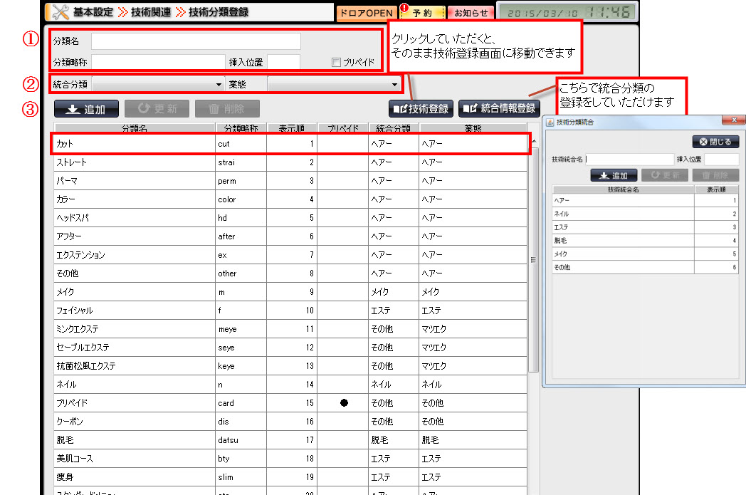 こちらの画面にて、技術分類を登録して頂くことができます。