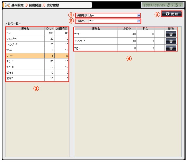こちらの画面にて、各技術に対して使用する按分(作業工程)を登録して頂くことができます。