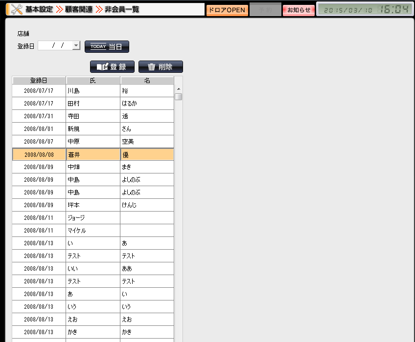 本来は、非会員から顧客へと登録して頂くことができますが、登録は店舗のみとなり、本部では閲覧のみとなります。