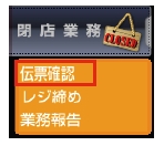 1左側のメインメニューの中の閉店業務をクリックし、その中の伝票確認をクリックして下さい。ここでは、お会計ごとに登録される売上伝票の確認をすることができます。