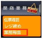 1左側のメインメニューの中の閉店業務をクリックし、その中の業務報告をクリックして下さい。