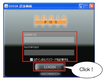 1デスクトップに表示されているSOSIA POSのアイコンをダブルクリックし、SOSIA POSを起動させて下さい。
