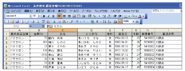 検索条件に該当したお客様の精算情報(お会計内容)、もしくは顧客情報(顧客情報登録内容)をExcel出力して頂くことができます。