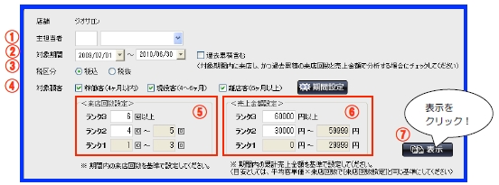 2対象期間を設定して下さい。(来店期間)