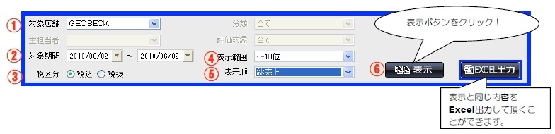 5ランキングの表示順を設定して下さい。(初期値は総売上が設定されています。)